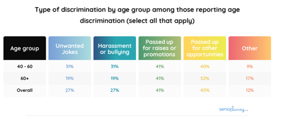 Ein 2020 von SeniorLiving.org veröffentlichter Bericht hebt die Tatsache hervor, dass jeder fünfte Arbeitnehmer über 40 in den USA altersbedingter Diskriminierung ausgesetzt ist. Obwohl es verschiedene Gesetze gibt, die altersbedingte Diskriminierung verbieten (z USA oder The Equality Act 2010 in Großbritannien) hat sich Altersdiskriminierung zu einem dringenden globalen Problem entwickelt, das angegangen werden muss.