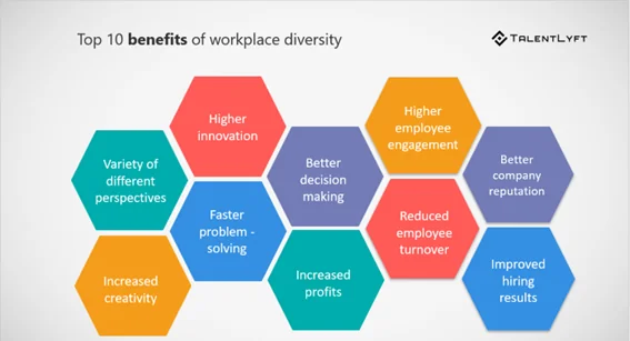 Durch diese Initiative stellen Sie sicher, dass die Belegschaft Ihres Unternehmens vielfältiger und integrativer ist. Wie TalentLyft betont, bringt Vielfalt am Arbeitsplatz eine Reihe von Vorteilen mit sich, die kein Unternehmen übersehen sollte:
