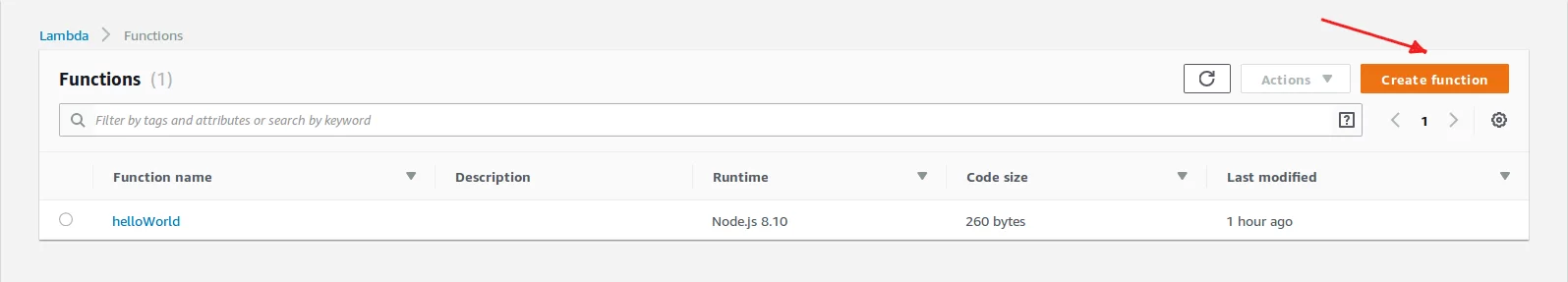 To create a function, there is a “Create function” button, located either on the “Dashboard” page or on the “Functions” page.