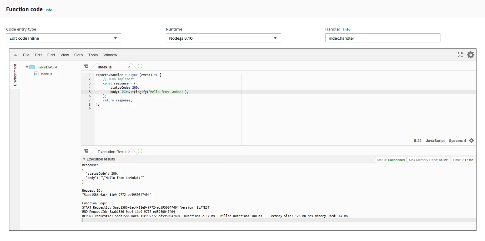 The language in which the function will be written. In our case, it will be Node.js 8.10.