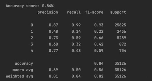 Die in diesem Projekt durchgeführte Forschung hat gezeigt, dass tiefe neuronale Netzwerke in der Lage sind, den Schweregrad der Krankheit effektiv zu bestimmen. Der gewichtete durchschnittliche F1-Score zur Erkennung von Pathologien von 82% ermöglicht es, die Arbeit eines Augenarztes erheblich zu verbessern und die Anzahl der Diagnosefehler zu reduzieren.
