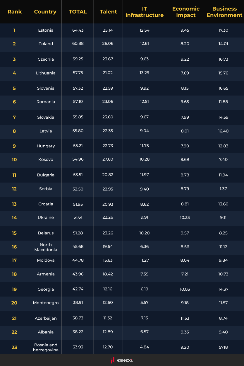 Dank eines stabilen, schnell wachsenden Geschäftsumfelds und eines umfangreichen Pools an Tech-Talenten belegt Polen derzeit den zweiten Platz im IT-Wettbewerbsfähigkeitsindex: