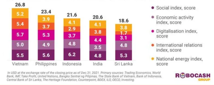 Rangliste der süd- und südostasiatischen Länder nach wirtschaftlicher Gesundheit durch die Digitalisierung