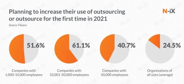 Many companies are already doing that: a 2019 Harvey Nash/KPMG CIO report showed that 41% of organizations had plans to increase their spending on software outsourcing.