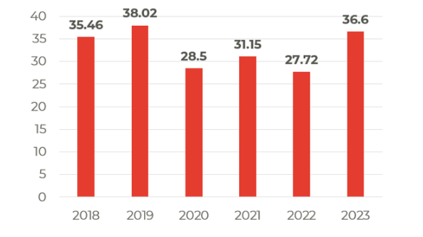 Im Jahr 2023 verzeichnete Vietnam einen signifikanten Anstieg der registrierten ausländischen Direktinvestitionen (FDI) in Höhe von insgesamt 36,6 Milliarden US-Dollar, was einem beeindruckenden Anstieg von 32,1% im Vergleich zum Vorjahr entspricht, wie von der Auslandsinvestitionsagentur (FIA) unter dem Ministerium für Planung und Investitionen berichtet wurde.