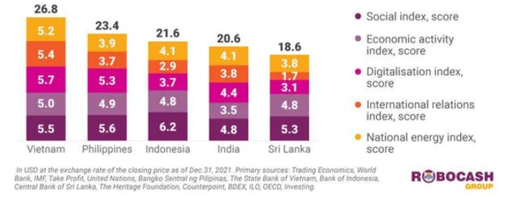 Rangliste der süd- und südostasiatischen Länder nach wirtschaftlicher Gesundheit durch die Digitalisierung