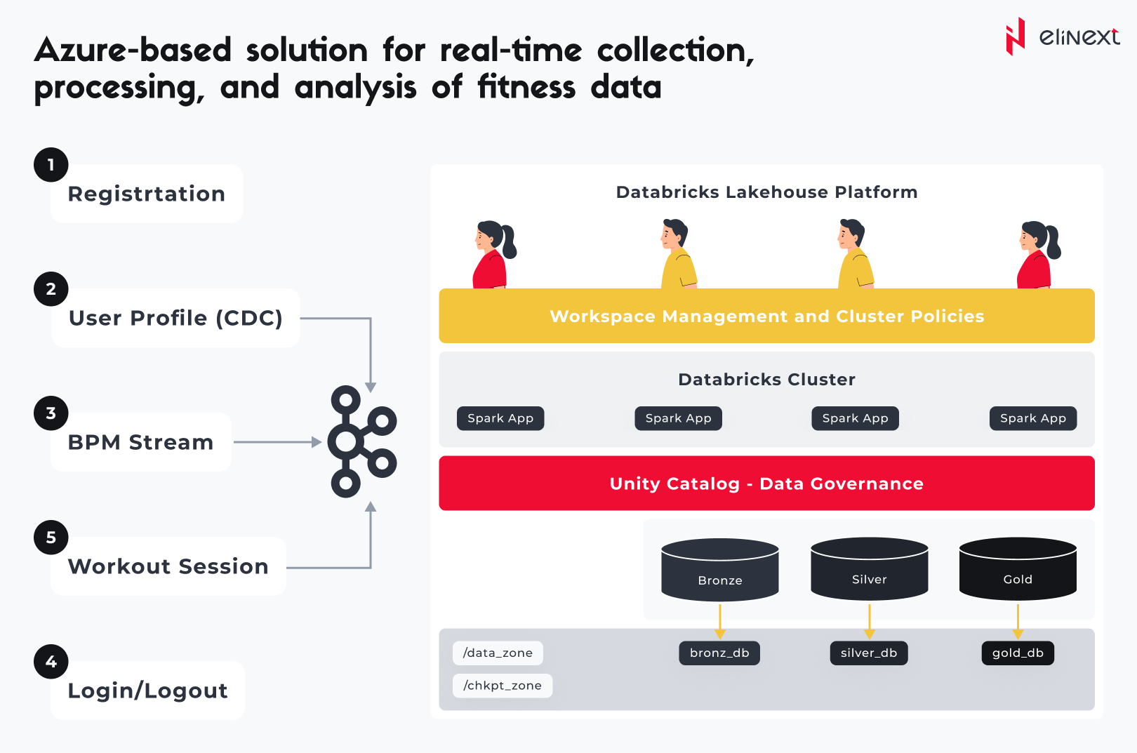 So sieht eine Azure-basierte Lösung für die Echtzeiterfassung, -verarbeitung und -analyse von Fitnessdaten aus, die von Fitbit generiert werden: