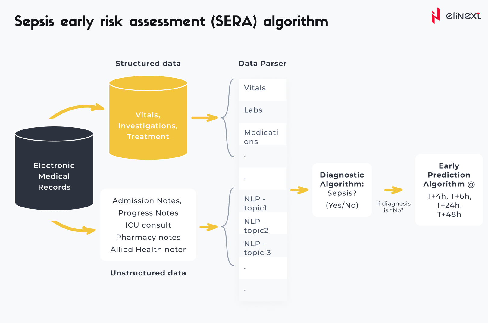 Erstens verwenden die meisten bekannten und genutzten Methoden zur Sepsisdiagnose und Früherkennung strukturierte Daten, die im elektronischen Krankenaktensystem (EMR) gespeichert sind. Gleichzeitig sind 80 % der Daten im EMR unstrukturiert (nicht in einem standardisierten Format gespeichert). Diese sollten als Datenquelle betrachtet werden, um bessere KI-Tools zu entwickeln, insbesondere für medizinische Zustände wie Sepsis, bei denen frühe Symptome schwer zu erkennen sind.